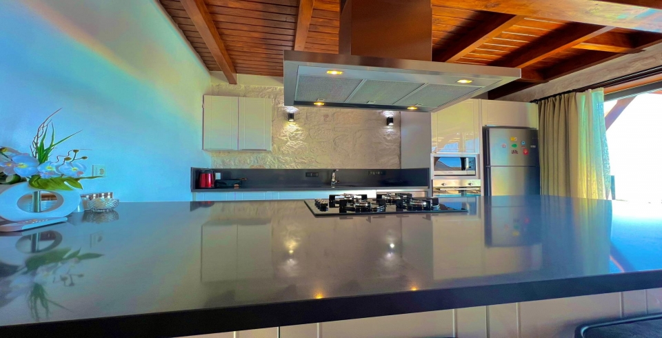 Mutfak : Villamızın mutfağında Amerikan mutfak 4 kişilik yemek takımı, buzdolabı, mikrodalga fırın, 4'lü ocak, tost makinası, kettle , çatal bıçak takımı, tencere tava takımı, bulaşık makinası bulunmaktadır.