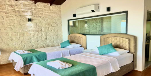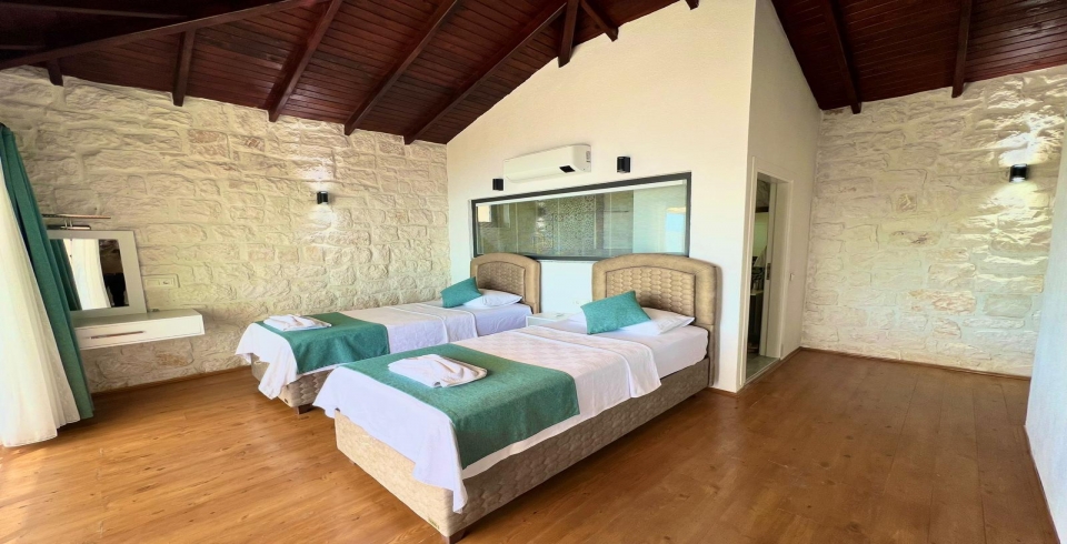 2. Yatak Odası : 2 adet tek kişilik yatak, komodin, klima, makyaj masası, elbise dolabı, banyo ve tuvalet bulunmaktadır.