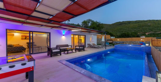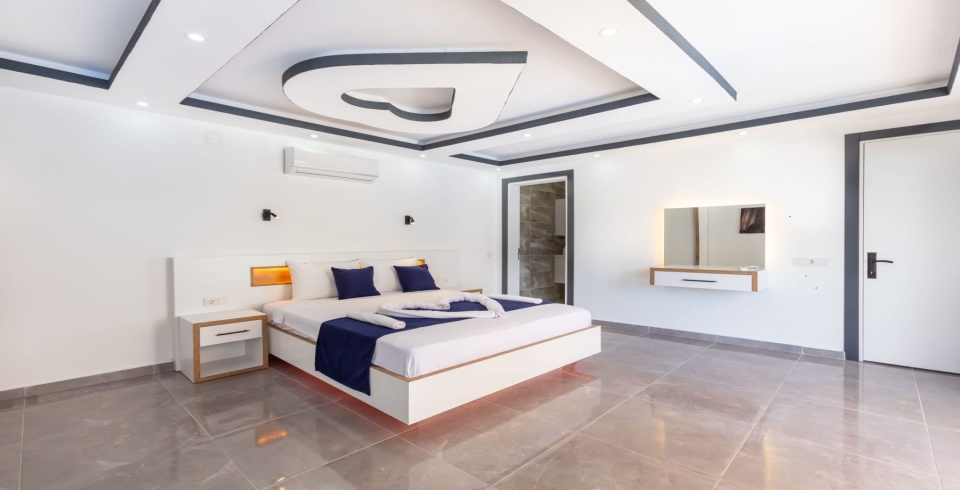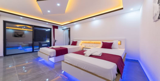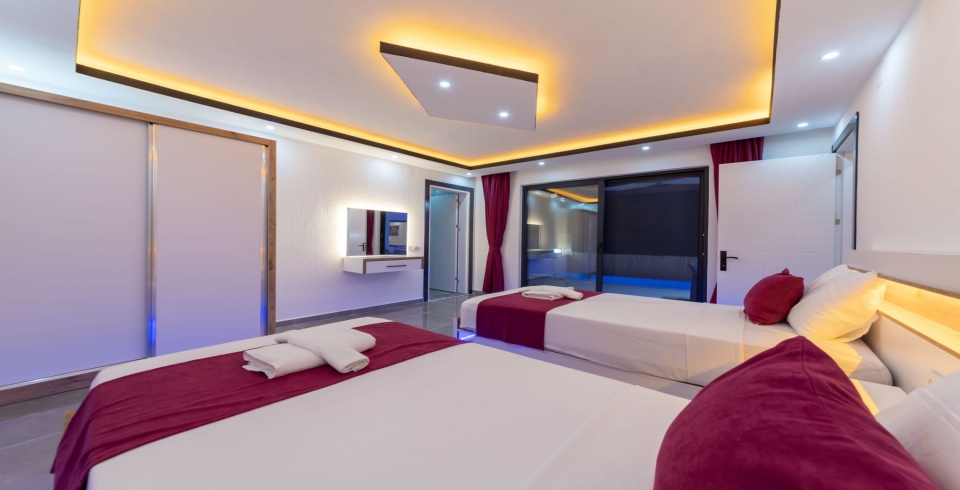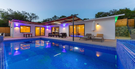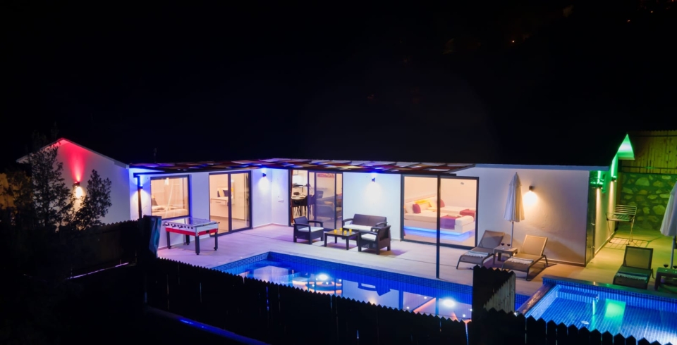 Kaş Sarıbelen'de bulunan 2 yatak odalı geniş bahçeli özel havuzlu villamız çekirdek aileler ve balayı çiftleri için ideal bir seçenektir. Havuz alanı dışardan görünmeyecek şekilde tasarlanan bu havuzlu villa muhafazakar tatil düşünen aileler için uygun bir seçenektir.