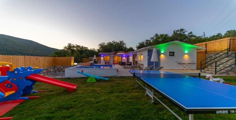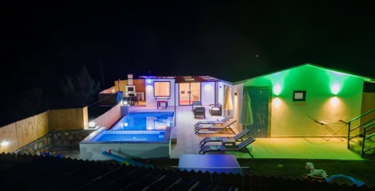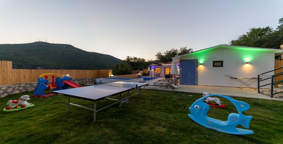 Havuz ve Bahçe : Villamızın bahçesi oldukça geniştir ve çocuklu ailelerimiz için oldukça uygundur. İçerisinde çocuklar için kaydırak, salıncak bulunmaktadır. Yalnızca çocukların değil ebeveynlerinin oynamaktan keyif alacağı masa tenisi langırt bulunmaktadır. Villamız korunaklı olduğundan dışarıdan kesinlikle görünmemektedir. 2 metre sığ özel yüzme havuzunun içinde şezlong bulunan bahçemizde ekstra şezlonglar, şemsiye, yemek masası, salıncak bulunmaktadır.