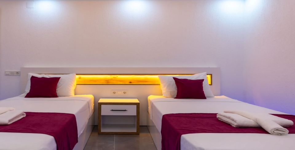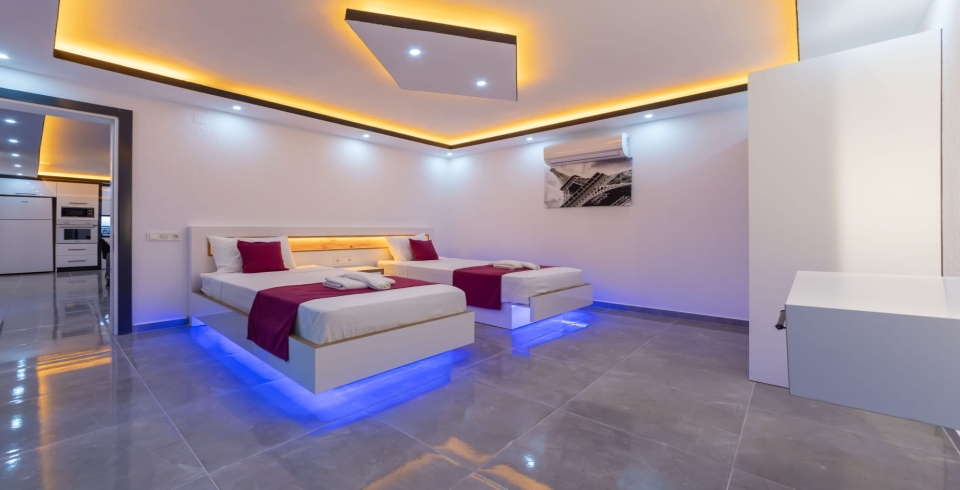 2. Yatak Odası : 2 adet tek kişilik yatak, komodin, klima, TV, makyaj masası, banyo ve lavabo bulunmaktadır.