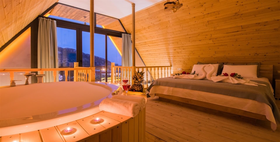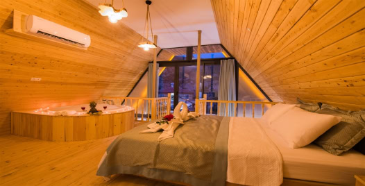 1 Yatak Odası : 1 adet çift kişilik yatak, klima, jakuzi, komodin, elbise dolabı, makyaj masası, banyo ve lavabo bulunmaktadır.