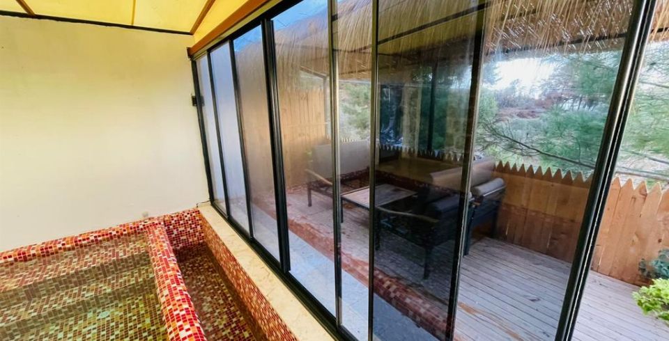 1.Yatak Odası: Doğa ile iç içe olan villamızın yatak odası manzarasında da sizi sonsuz güzel yeşillikler karşılayacak. Eşsiz doğa manzarasına karşı bir de jakuzi bulunmaktadır. Beraberinde çift kişilik yatak, klima, komodin, makyaj masası, banyo ve lavabo bulunmaktadır.