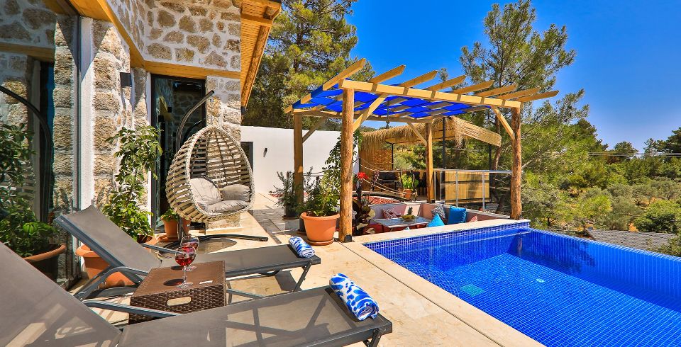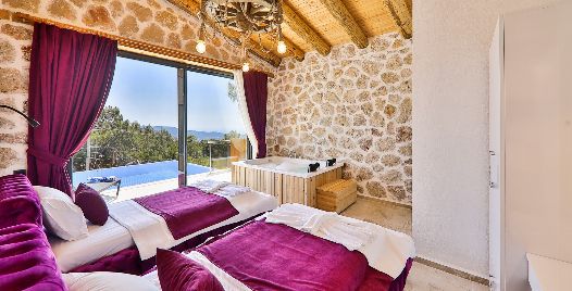 Kalkan İslamlar bölgesinde bulunan 2 Yatak odalı 4 kişilik çift jakuzili saunalı olan villamız yeni yapılmış olup muhteşem doğa manzarasına sahiptir. Villamız 2021 yılında yapılmış olup lüks. Muhafazakar aileler uygun olarak dizayn edilmiştir. Taş mimari tasarımı ile adeta göz büyülemektedir konsepte ki villalarımız içersin de bulunmaktadır.. Villamız korunaklı ve muhafazakar ailelere ve balayı çiftleri için son derece ideal bir seçenektir.