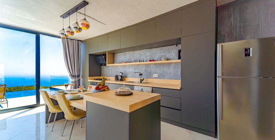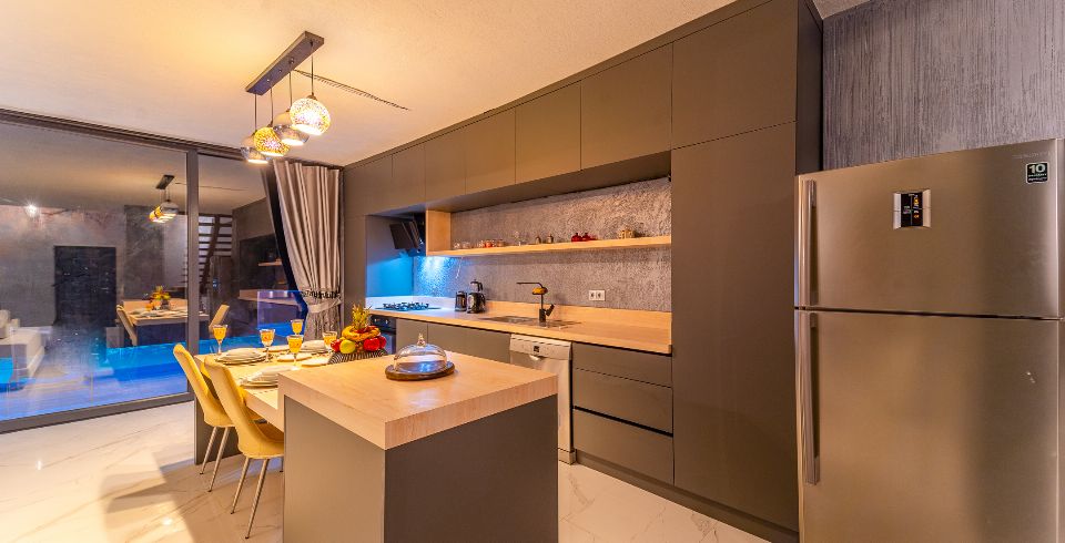 Mutfak : Modern Amerikan mutfakta buzdolabı, bulaşık makinası, fırın, ocak, mikrodalga fırın, tost makinası, kettle, yemek masası, yemek takımları, çatal ve bıçak takımları, tencere ve tava takımları, bardaklar bulunmaktadır.