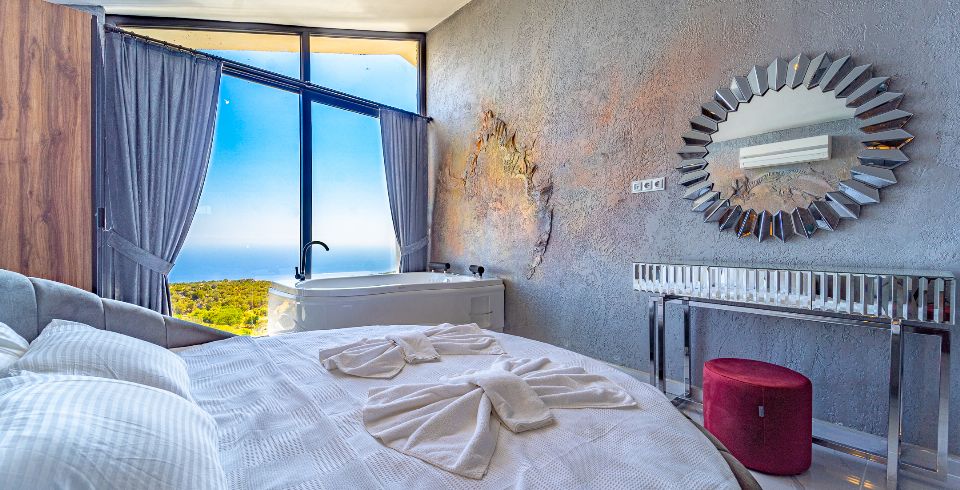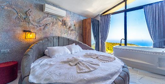 Kiralık Villa Bride Diamond, Kalkan Ordu mevkiinde yer almakta olup 2 yatak odalı 4 kişiye kadar konaklama imkanı sağlamaktadır. Tüm yatak odalarında jakuzi yer alan lüks villamız muhteşem deniz manzarasına hakim olup tatilinizi taçlandıracaktır. Özel tasarımı ile göz dolduran villamızın Amerikan mutfağında ihtiyaç duyabileceğiniz tüm mutak ekipmanları mevcut olup konforlu mobilyalarla dizayn edilmiş salonu hizmetinizdedir.