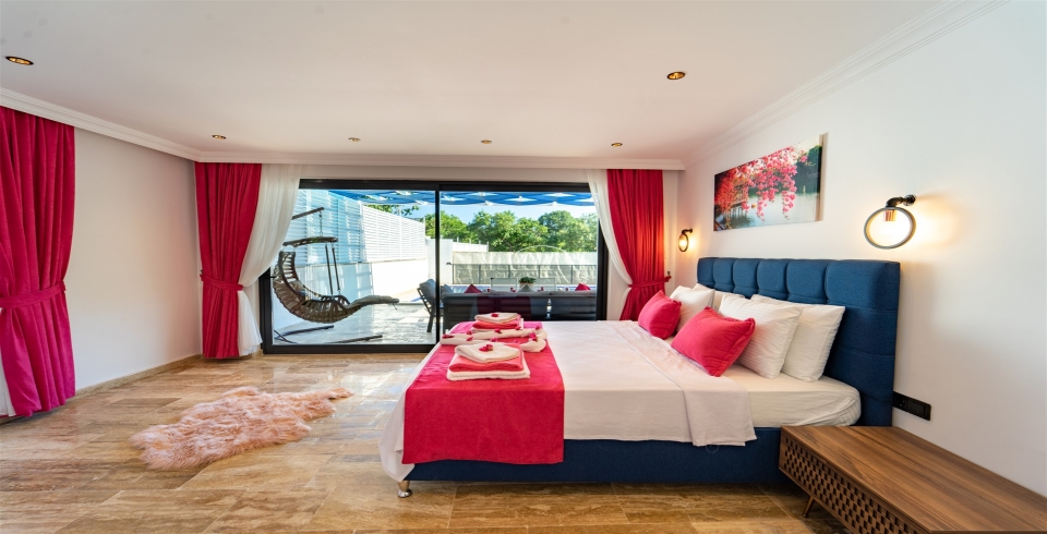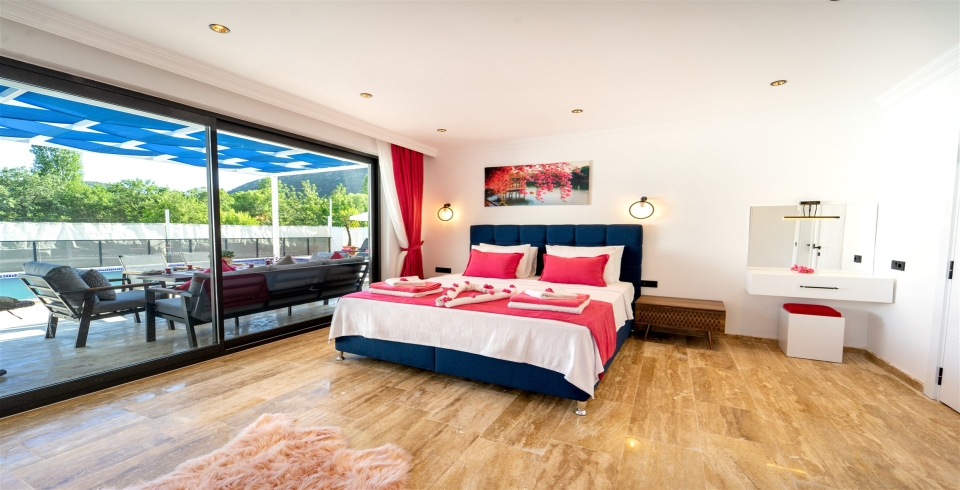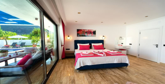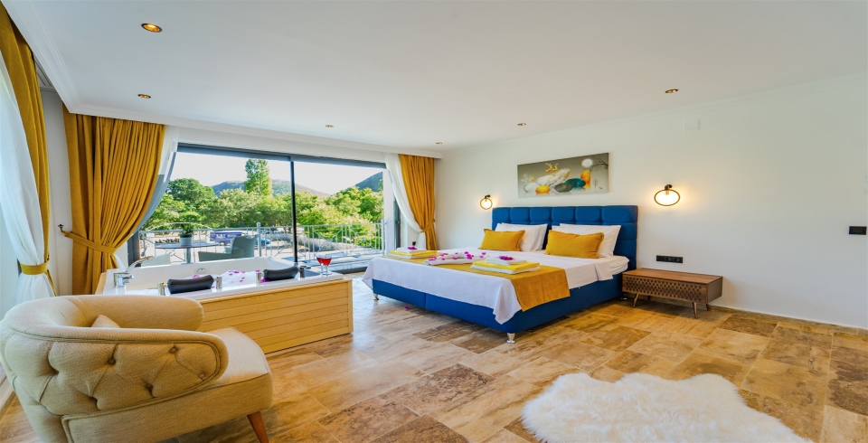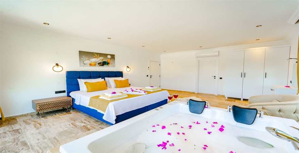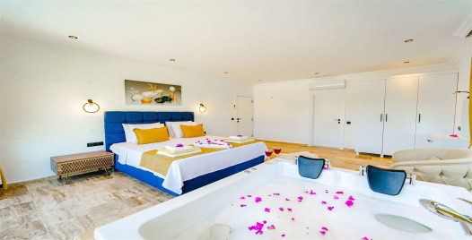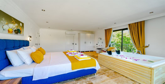 1. Yatak Odası : Çift kişilik yatak, klima, komodin, jakuzi, elbise dolabı, makyaj masası, balkon, banyo ve lavabo bulunmaktadır.