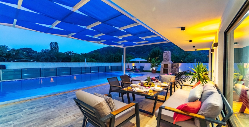 Havuz ve Bahçe : Villamızın havuz terasında şezlong, şemsiye, salıncak, oturma grubu, barbekü, özel yüzme havuzu, bulunmaktadır.