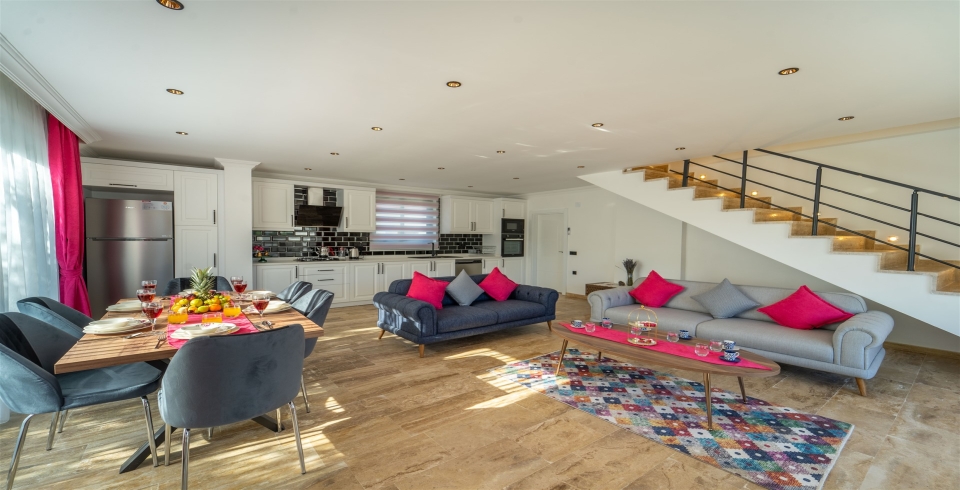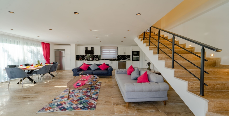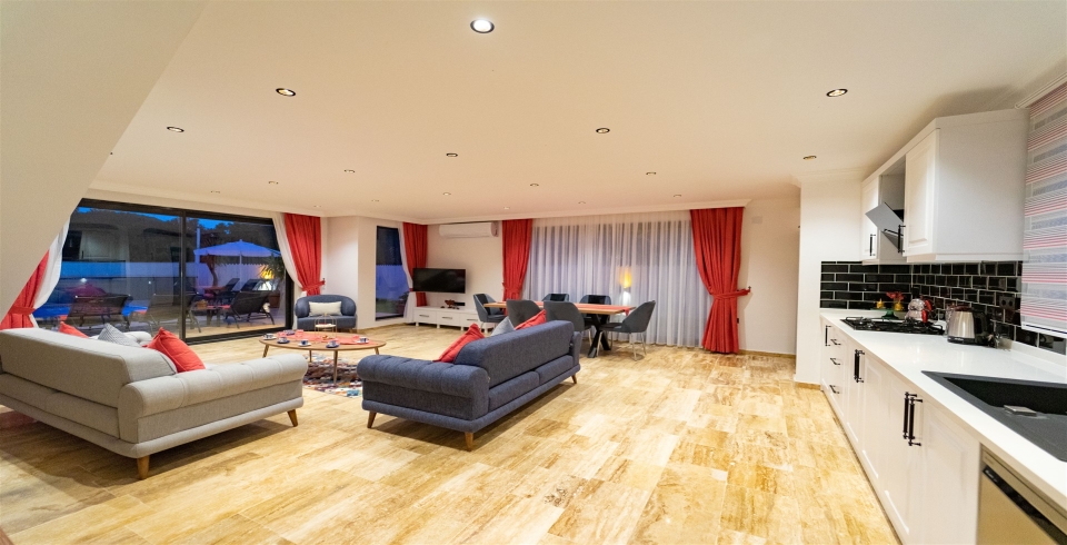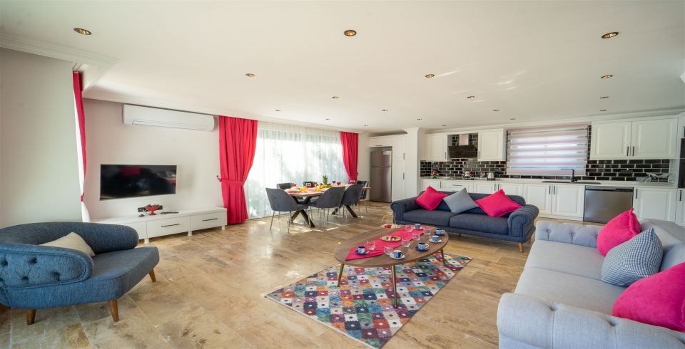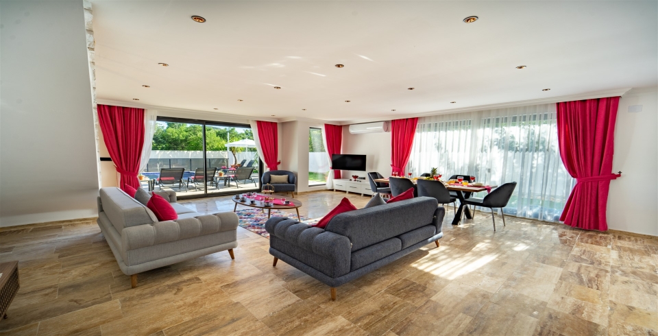 Salon : Villa salonunda oturma grubu, TV, internet, klima, sehpa bulunmaktadır.