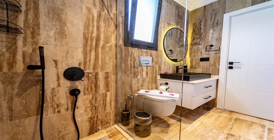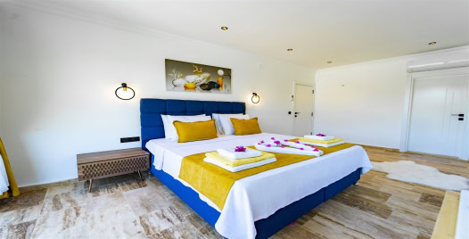 3. Yatak Odası : Çift kişilik yatak, klima, komodin, makyaj masası, elbise dolabı, banyo ve lavabo bulunmaktadır.