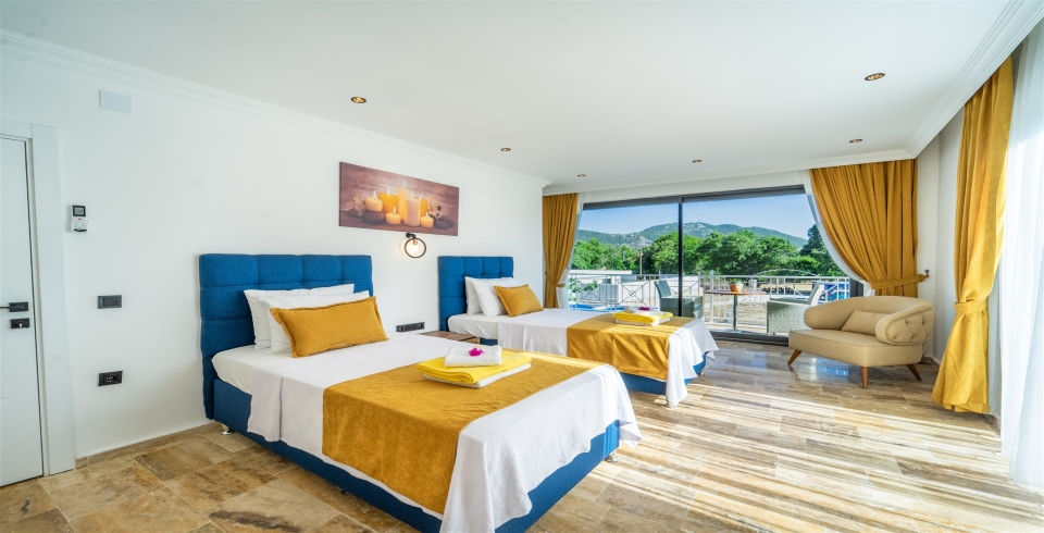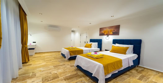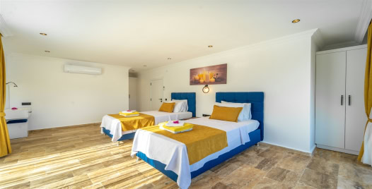 2. Yatak Odası : 2 adet tek kişilik yatak, komodin, klima, makyaj masası, elbise dolabı, balkon, banyo ve lavabo bulunmaktadır.