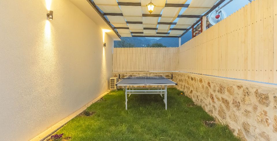 Havuz ve Bahçe : Muhafazakar villamızda havuz terası korunaklı olup dışarıdan üçüncü şahıslar tarafından gözükmemektedir. Bahçemizin içerisinde özel yüzme havuzu, şezlonglar, güneş şemsiyesi, yemek masası ve mangal bulunmaktadır.