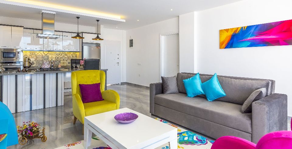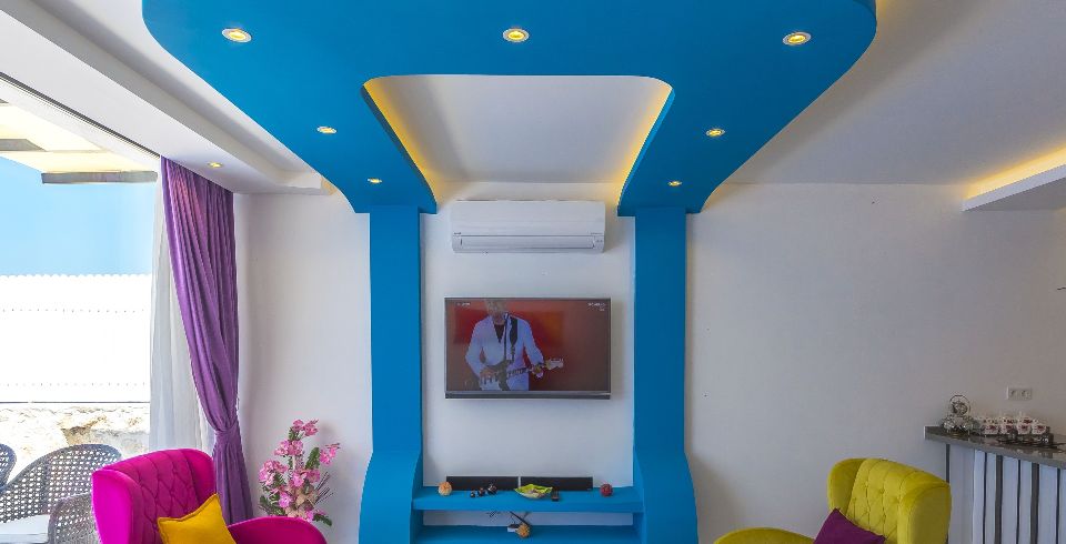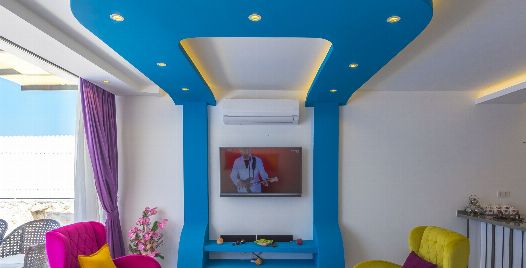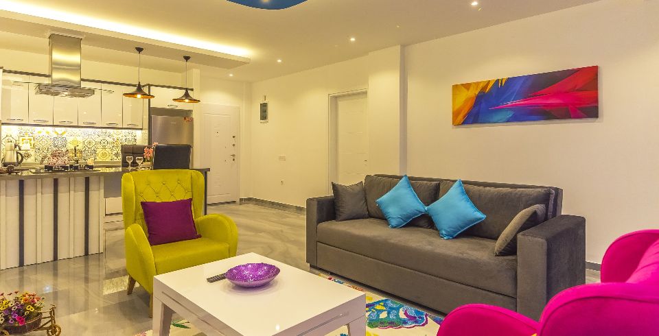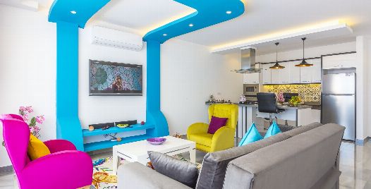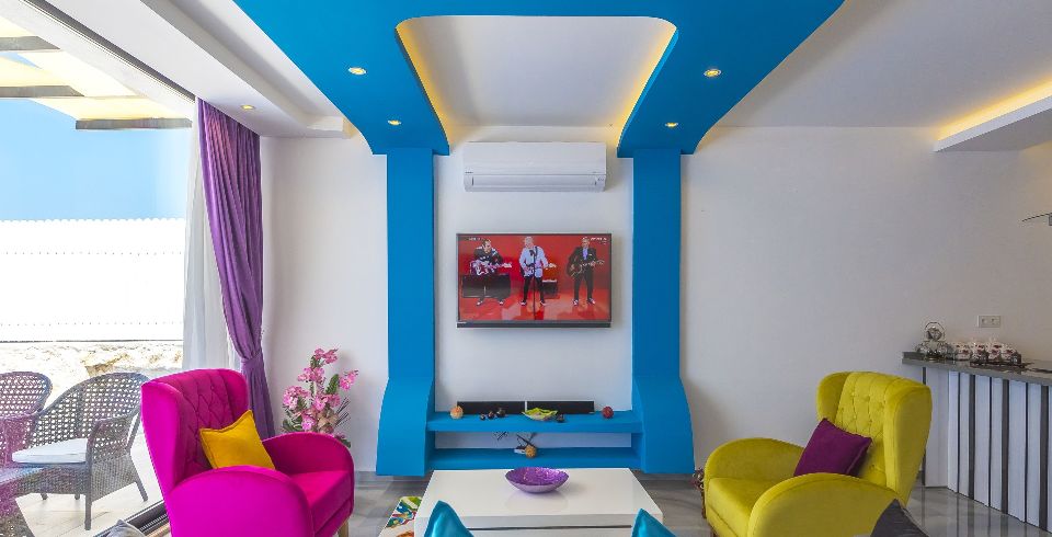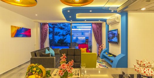 Salon : Sadelik ve şıklık ile tasarladığımız salonumuzda sizi misafir etmekten heyecan duyuyoruz. Deniz manzarasına karşı olan salonumuzda oturma grubu, plazma TV, uydu alıcı, klima, lavabo, ütü, ütü masası ve lavabo bulunmaktadır.