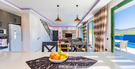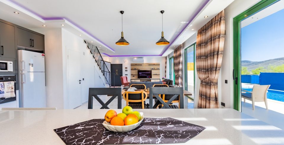 Kalkan kiralık villa seçenekleri arasında ön plana çıkan Villa Burcu, doğayla iç içe sakin bir konumda yer almasına rağmen Sarıbelen merkezine oldukça yakın bir mesafededir. Market, fırın gibi günlük ihtiyaçlarınızı karşılayabileceğiniz alanlara kolayca ulaşabilirsiniz. Ancak kişisel aracınızın olması, ulaşım açısından konforunuzu artıracaktır.
