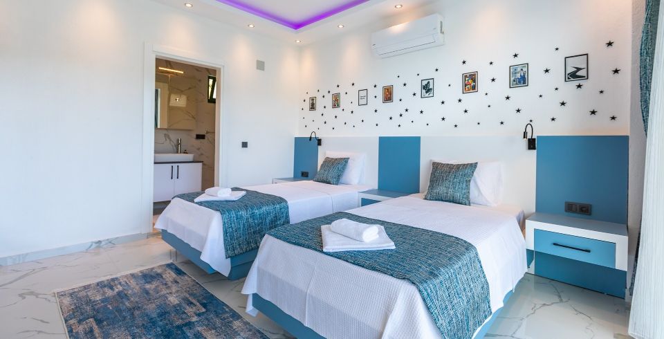 2. Yatak Odası : 2 adet tek kişilik birleştirile bilir yatak, klima, jakuzi, komodin, elbise dolabı, makyaj masası, banyo ve lavabo bulunmaktadır.