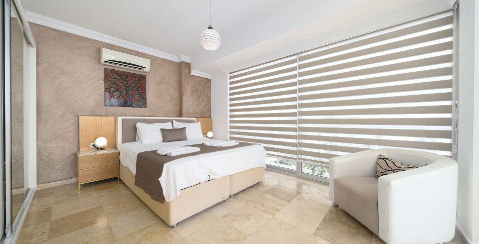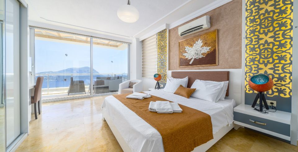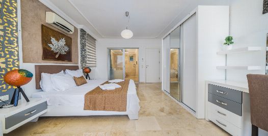6. Yatak Odası: 1 adet çift kişilik yatak, gardırop, komodin, makyaj masası, klima, banyo ve tuvalet bulunmaktadır.