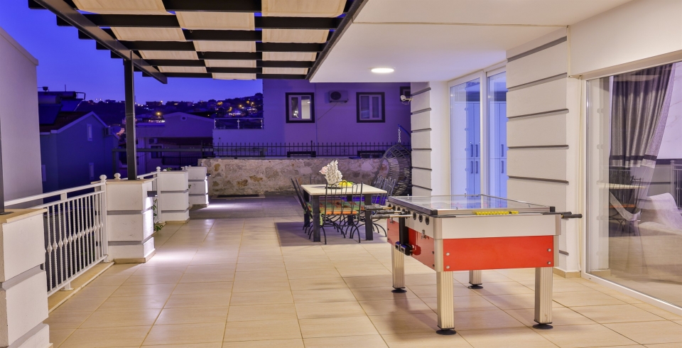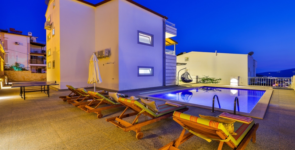 Havuz terası, deniz manzarası eşliğinde keyifli vakit geçirebilmeniz için özenle düzenlenmiştir. 8x4 metre ölçülerinde özel yüzme havuzu, şezlonglar, salıncak, masa tenisi, langırt, yemek alanı ve barbekü misafirlere eğlenceli ve rahatlatıcı bir ortam sunar. Gün boyunca güneşlenip serinledikten sonra akşamları barbekü eşliğinde keyifli akşam yemekleri sizleri bekliyor.