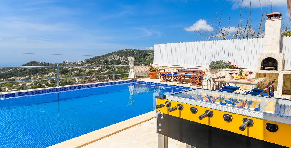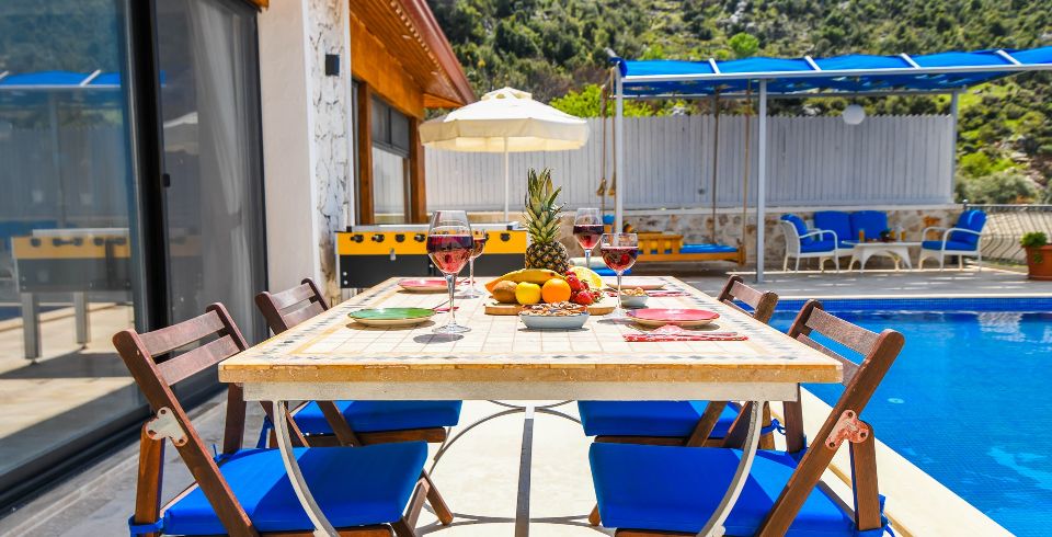 Bahçe : Villamızın bahçesinde özel yüzme havuzu, güneşlenmeniz için 2 adet şezlong, 4 kişilik masa, oturma grubu, mangal keyfiniz için barbekü, güneş şemsiyesi bulunmaktadır.