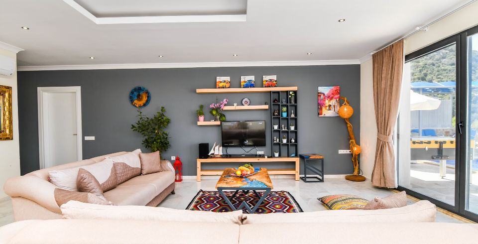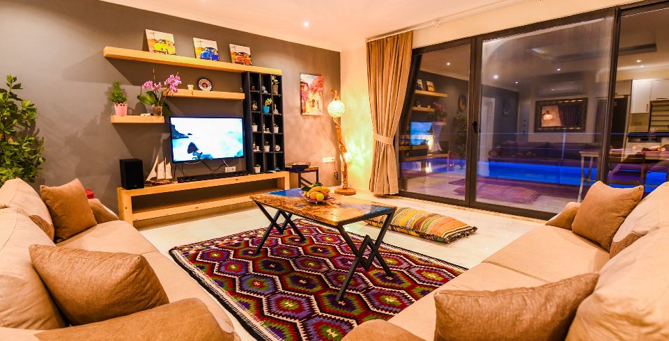 Salon : Villa Büşra’nın salonunda sizi şık bir oturma grubu ile klima, televizyon, internet, uydu, koltuk, sehpa ile ferah bir salon bekliyor olacaktır. Havuz terasına çıkış yapılmaktadır.