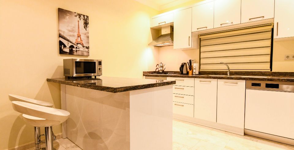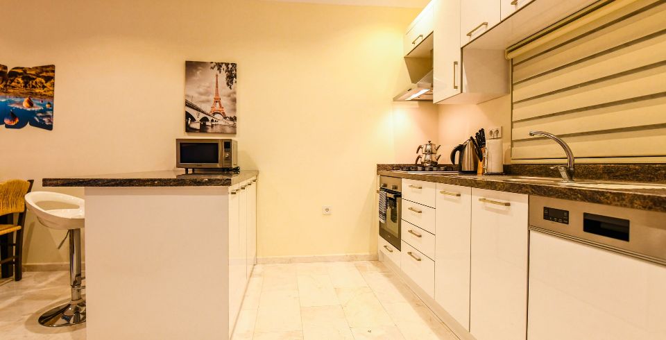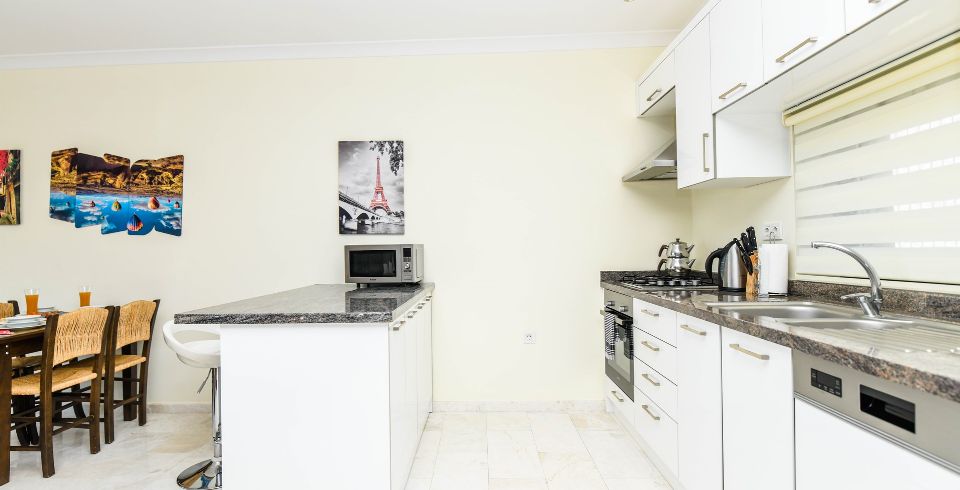 Mutfak : Villamızın geniş Amerikan mutfağı ile sizlere kendi evinizin mutfağı gibi hissettirecek. Ayrıca mutfakta klima, bulaşık makinası, buzdolabı, çamaşır makinası, mikrodalga fırın, tost makinası, ekmek kızartma, su ısıtıcısı, fırın, 4`lü ocak seti ve 2 kişilik yemek masası ile tava tencere vb. mutfak araç gereçlerini kullanma fırsatını sizlere sunuyoruz.