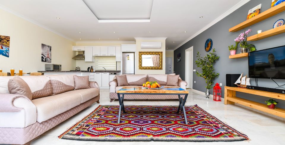 Ev çok güzel geniş ve ferah Balkon korkulukları küçük çocukları olanlar için dikkat edilmesi gerekiyor Çocuk havuzunu bulduk yalnız yetişkin havuzunu bulamadık