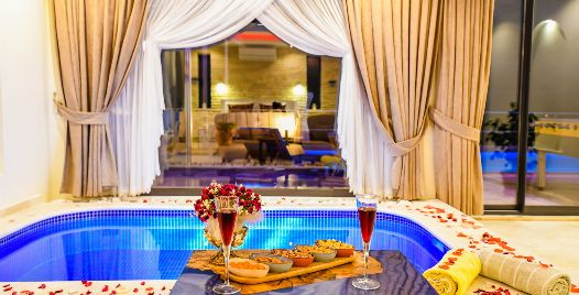 Havuz etrafı korunaklı villalarımızda %100 görünmememe garantisi vermemekteyiz bu villalarımızda her zaman %5 sakınma payı mevcuttur.
