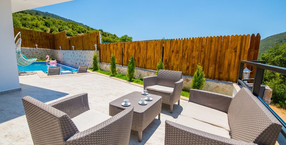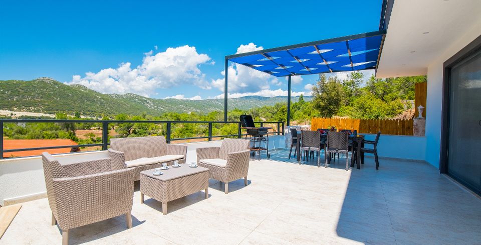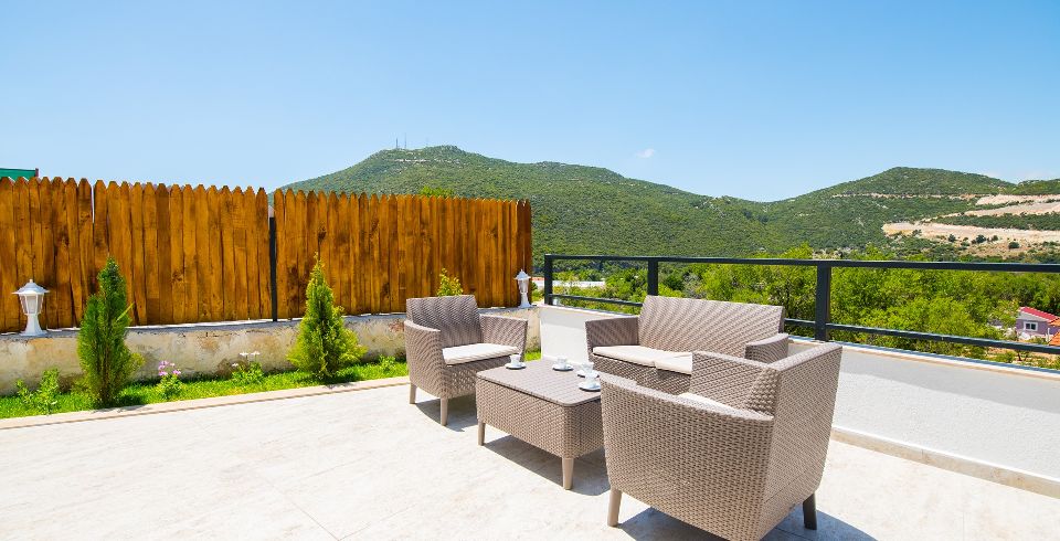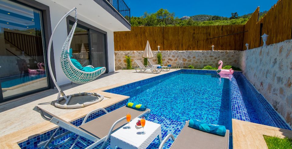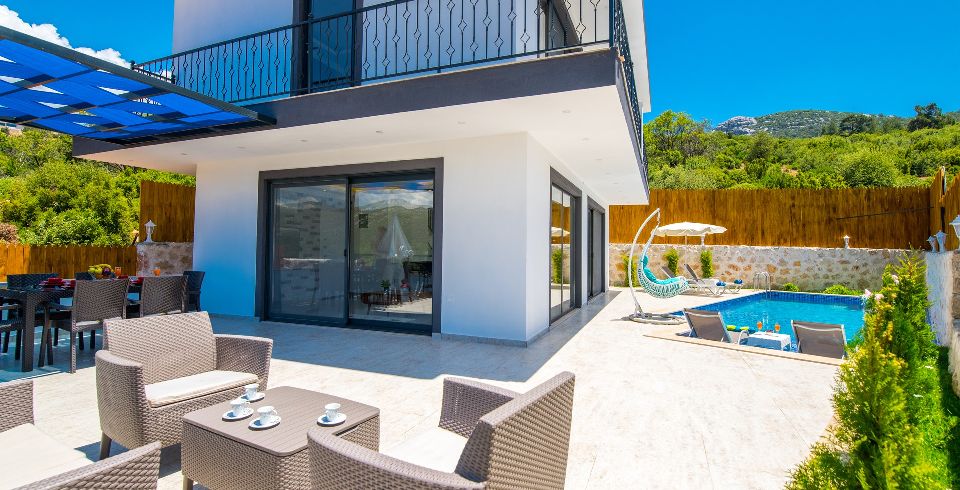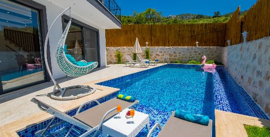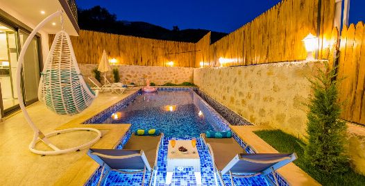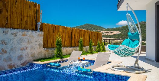Kiralık yazlık villamız Kalkan Sarıbelen mevkisin de konumlanmıştır. 2 yatak odalı 4 kişilik kapasiteye sahiptir. Villa Çağla Muhafazakar aileler için dizayn edilmiş olup kesinlikle dışarıdan gözükmemektedir. Doğa içerisinde kuş seslerinin verdiği huzur ile beraber özel havuz keyifli yapabilirsiniz. En süit yatak odasında balayı çiftlerine özel jakuzili dizayn edilmiştir.