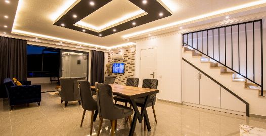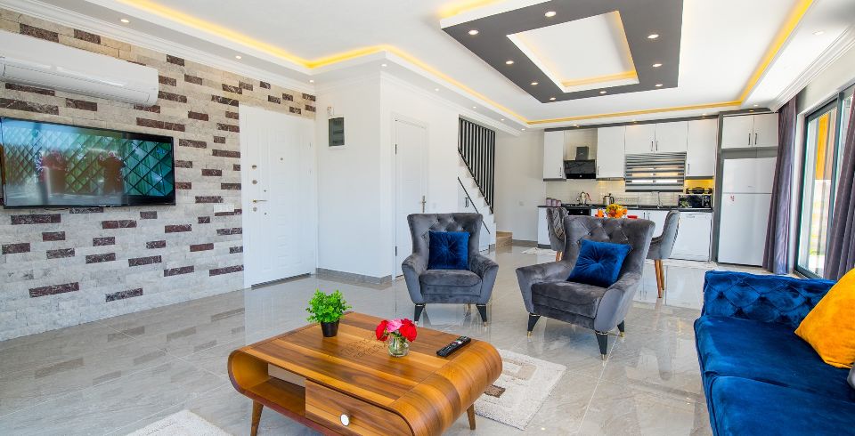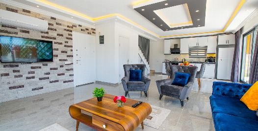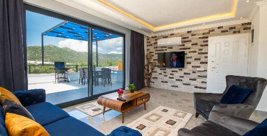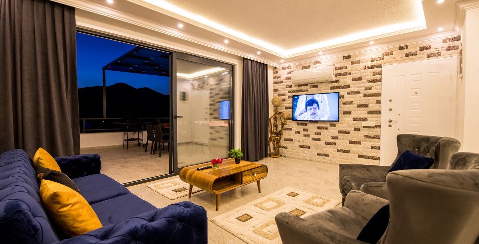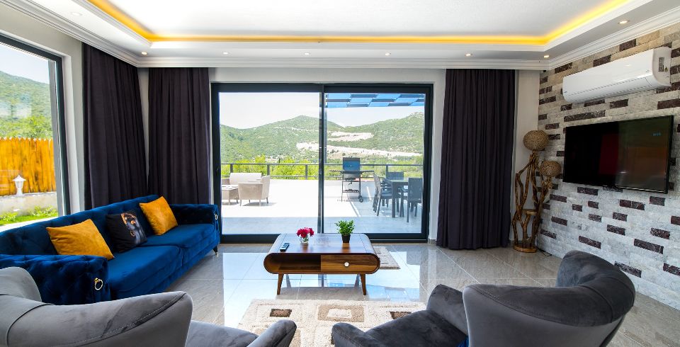 Salon : Villa çağla salonunda konforlu oturma grubu, klima, TV, internet, uydu alıcı, yemek masası, sehpa bulunmaktadır.