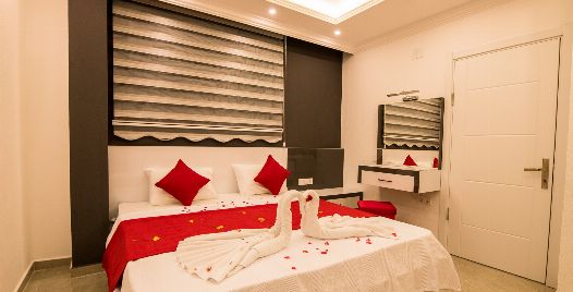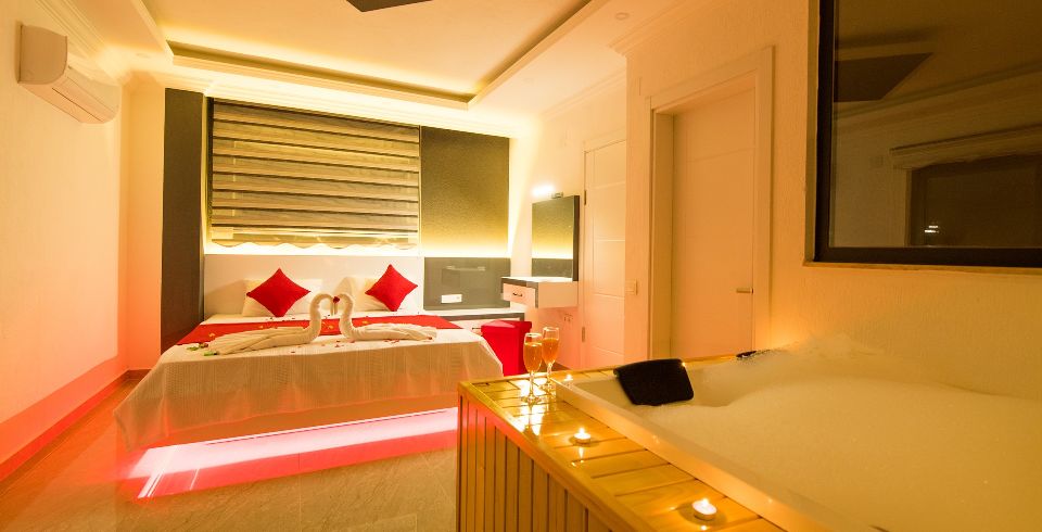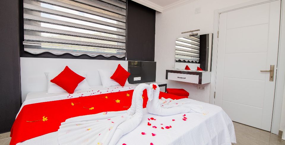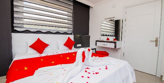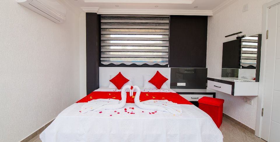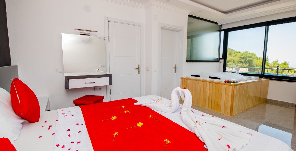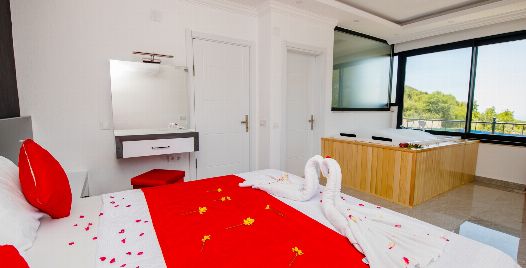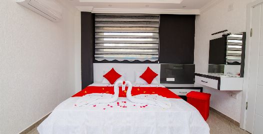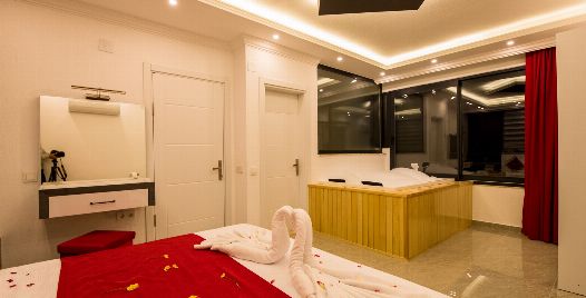1. Yatak Odası : Çift kişilik yatak, klima, jakuzi, komodin, elbise dolabı, makyaj banyo ve tuvalet bulunmaktadır.