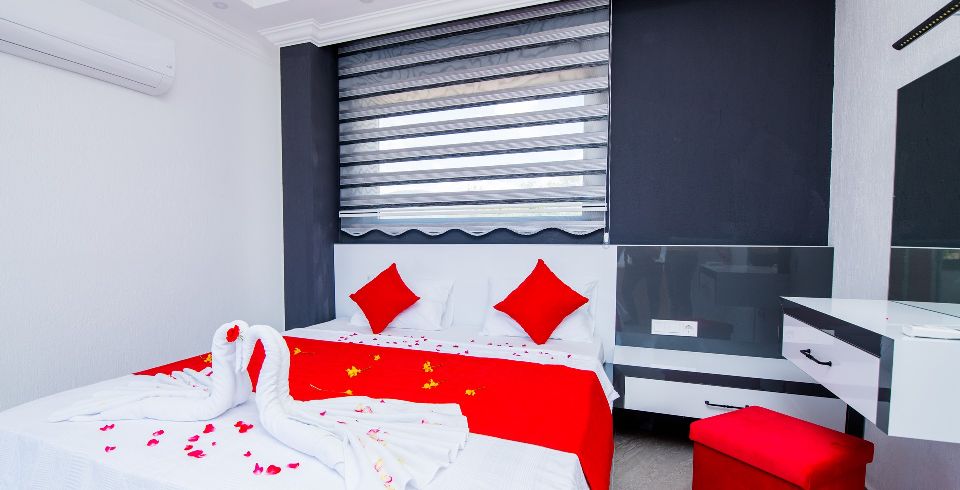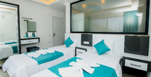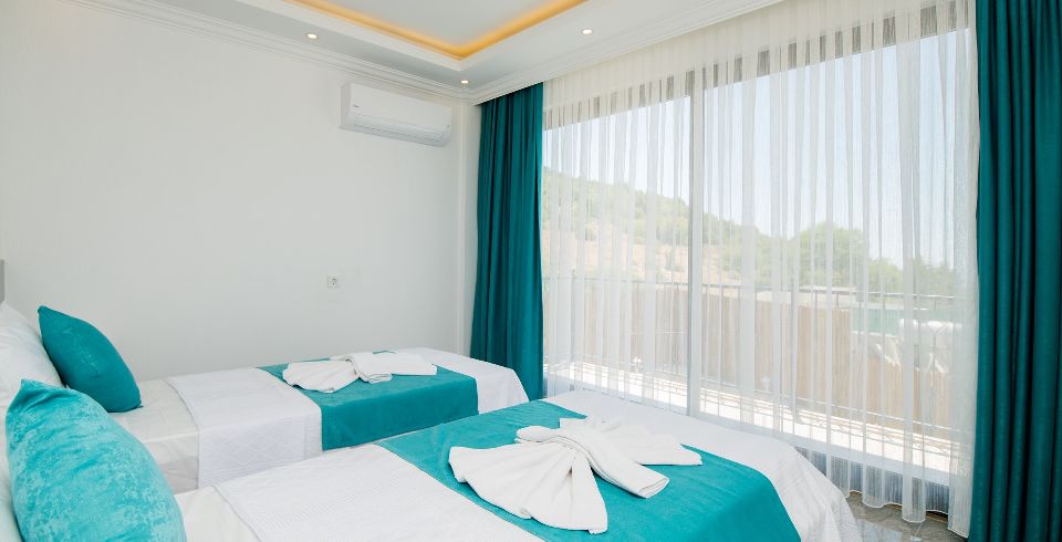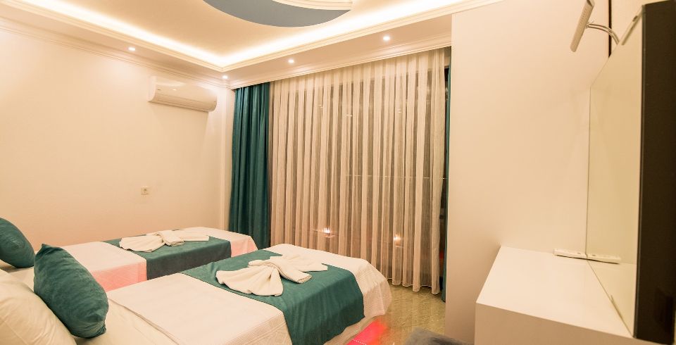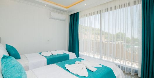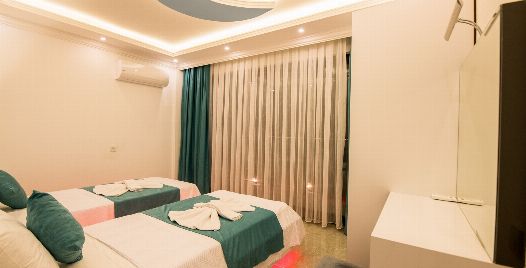 2. Yatak Odası : 2 adet tek kişilik yatak, klima, elbise dolabı, komodin, makyaj masası, banyo ve tuvalet bulunmaktadır.