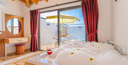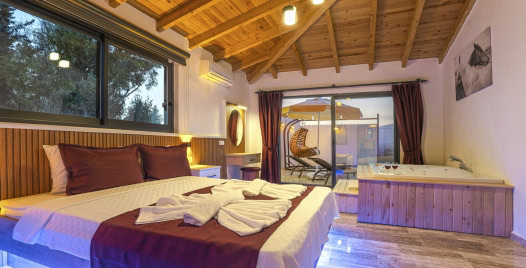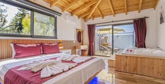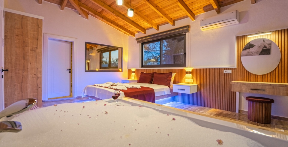 1. Yatak Odası : 1 adet Çift kişilik yatak, klima, komodin, jakuzi, makyaj masası, elbise dolabı, banyo ve lavabo bulunmaktadır.