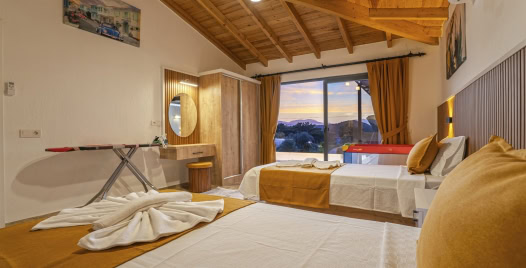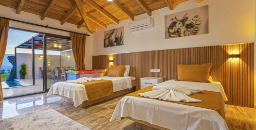 2. Yatak Odası : 2 adet tek kişilik yatak, komodin, klima, makyaj masası, elbise dolabı, banyo ve lavabo bulunmaktadır.