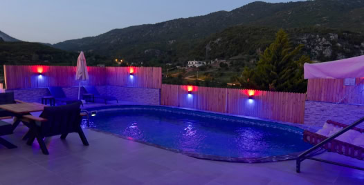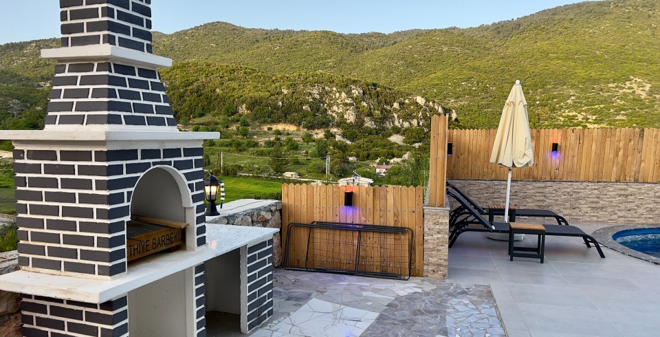 Havuz ve Bahçe : Özel yüzme havuzu bulunan villamızın havuz terasında şemsiye, şezlong, barbekü, oturma yeri, yemek masası ve sandalyeler bulunmaktadır.