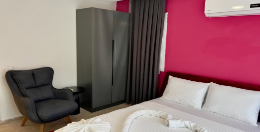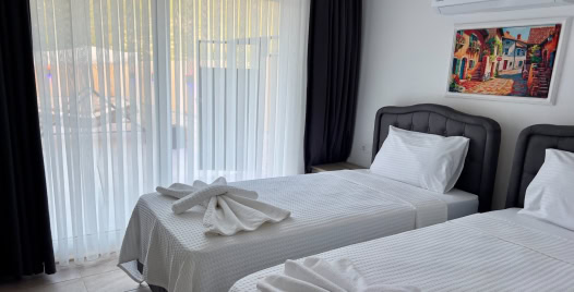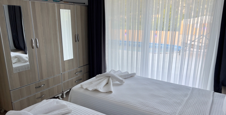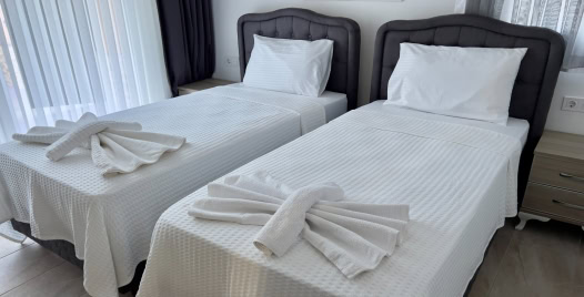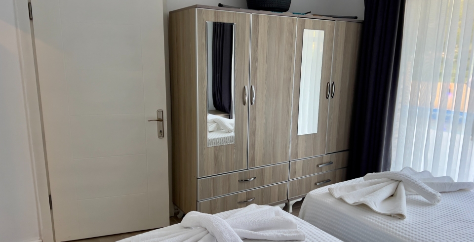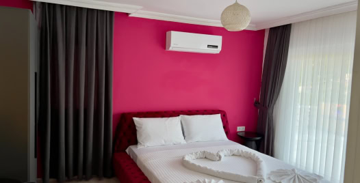 Yatak Odası : Çift kişilik yatak odası, klima, elbise dolabı, makyaj masası, komodin, banyo ve WC bulunmaktadır.