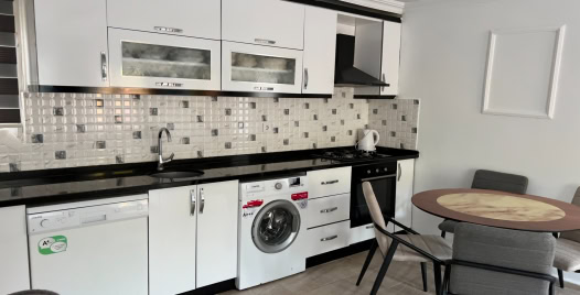 Mutfak : Amerikan açık mutfak ve salona sahip villamızın mutfağında buzdolabı, bulaşık makinası, ankastre ocak, fırın, mikrodalga, 4'lü ankastre ocak, kettle, çamaşır makinası, yemek masası ve 1mutfak araç ve gereçleri bulunmaktadır.