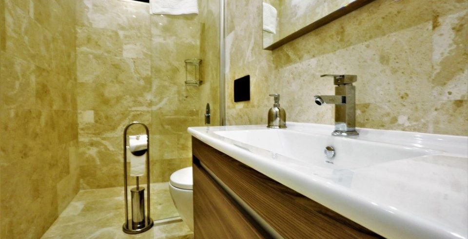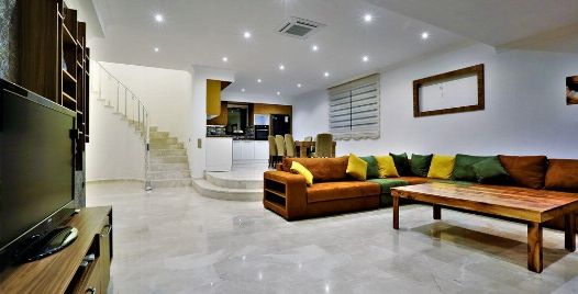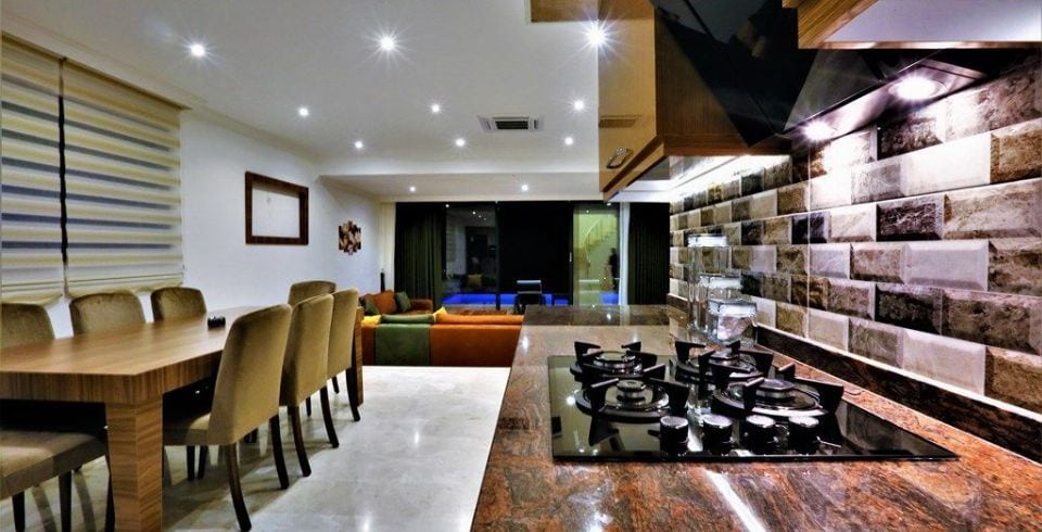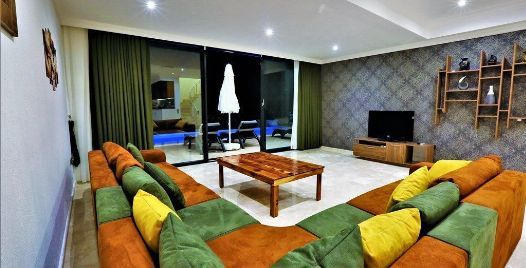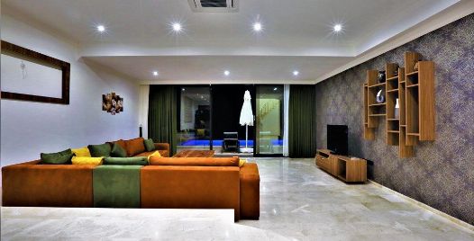 Salon : Salon içerisinde oturma grubu, TV, klima, sehpa bulunmaktadır. Havuz terasına çıkış yapılabilmektedir.