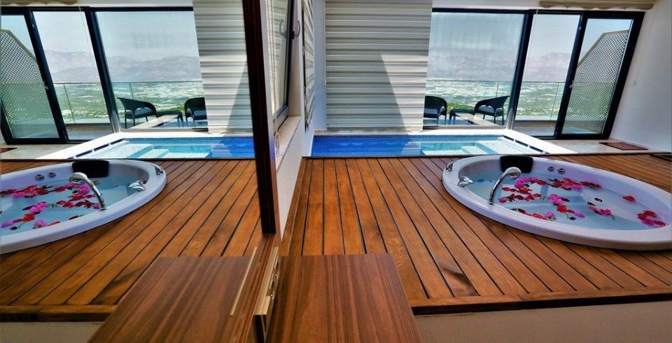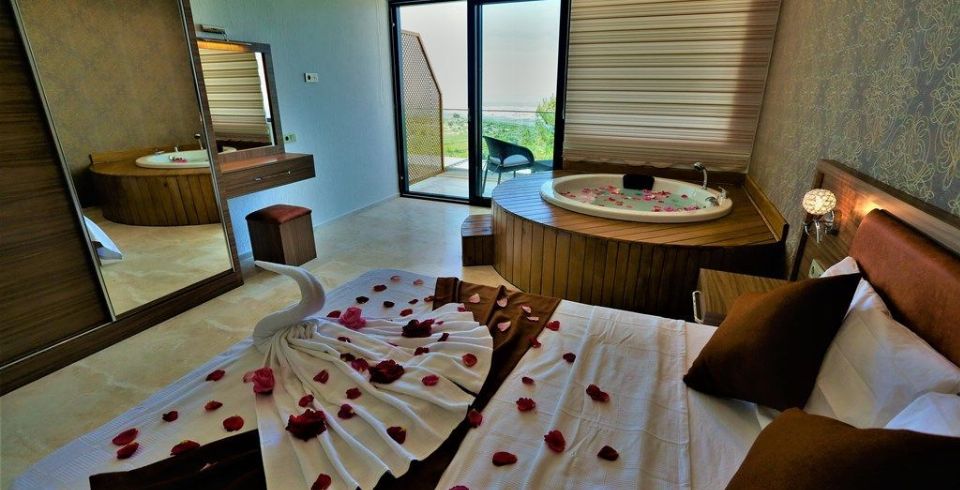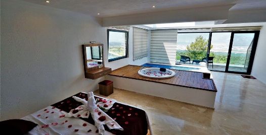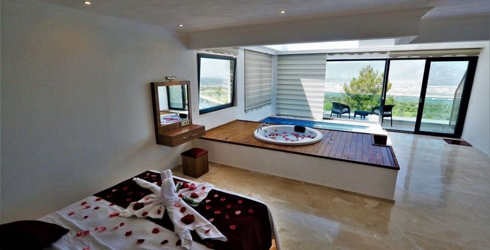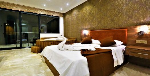 1. Yatak Odası : 1 adet çift kişilik yatak, klima, komodin, elbise dolabı, makyaj masası, jakuzi, yüzme havuzu, balkon, banyo ve tuvalet bulunmaktadır.