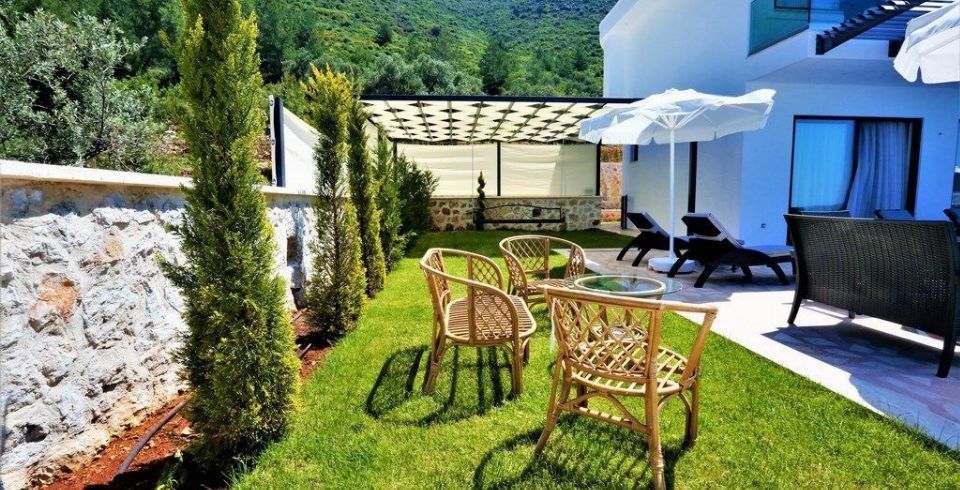 Bahçe : Bahçe içerisinde özel yüzme havuzu, şezlonglar, güneş şemsiyesi, bahçe mobilyaları, salıncak, barbekü bulunmaktadır.