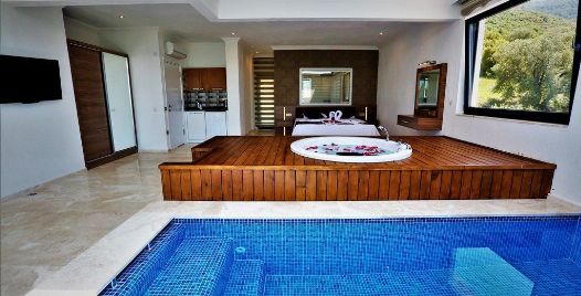 Havuz : Villa içerisinde 4mx2m ölçülerinde kapalı havuz yer almaktadır. Havuz terası korunaklı olup dışarıdan gözükmemektedir.