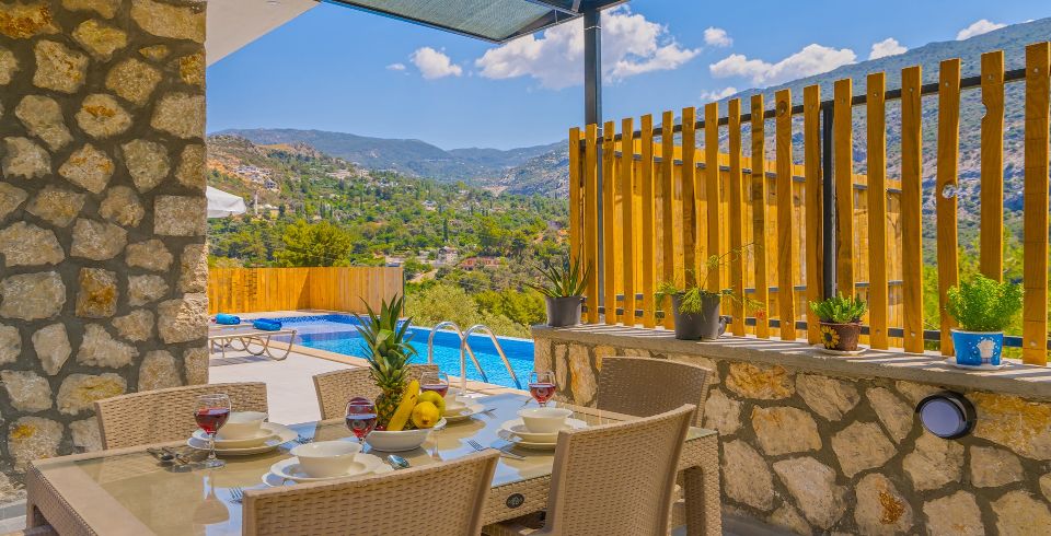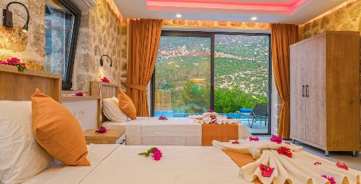Kalkan İslamlar bölgesinde bulunan 2 yatak odalı 4 kişilik yeni yapılmış muhafazakar korunaklı villamız taş ve ahşap mimariye sahip doğa manzaralı villamızın bahçesinde salıncak bulunmakta olup tatil süreniz içersin de keyifli bir vakit geçirmenizi sağlayacaktır. Villamız Muhafazakar olup Balayı tatili düşünen çiftlerimiz içinde oldukça uygun bir villa seçeneğimizdir.