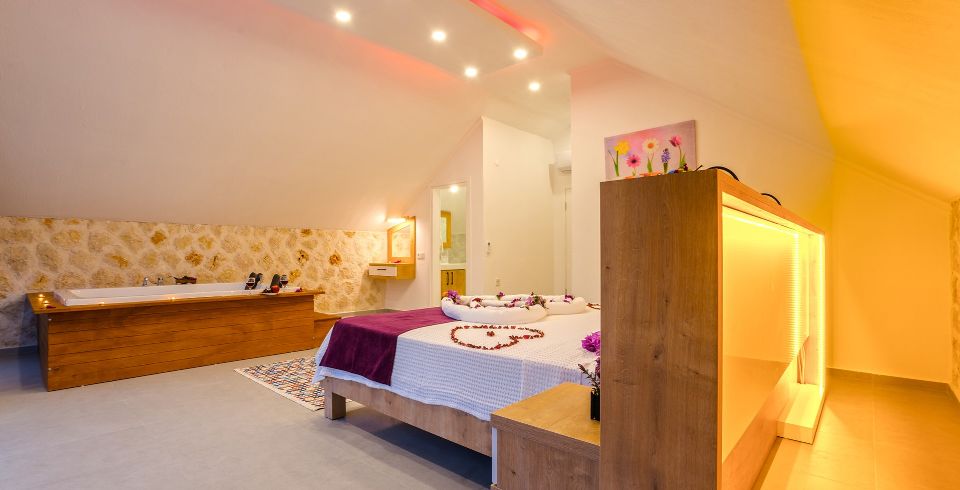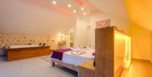 1. Yatak Odası : 1 adet çift kişilik yatak, klima, komodin, elbise dolabı, makyaj masası, jakuzi, banyo ve tuvalet bulunmaktadır.
