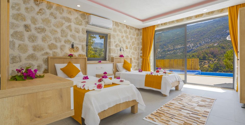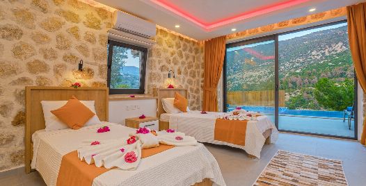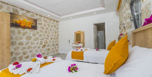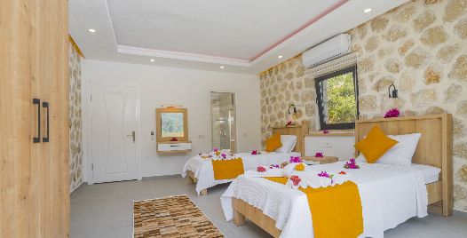 2. Yatak Odası : 2 adet tek kişilik yatak, klima, komodin, elbise dolabı, makyaj masası, banyo ve tuvalet bulunmaktadır.
