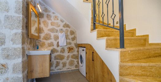 Mutfak : Modern Amerikan mutfak içerisinde 6 kişilik yemek masası, mama sandalyesi, buzdolabı, bulaşık makinası, fırın, ocak, mikrodalga fırın, tost makinası, yemek masası, yemek takımları, çatal ve bıçak takımları, tencere ve tava takımları, bardaklar bulunmaktadır.