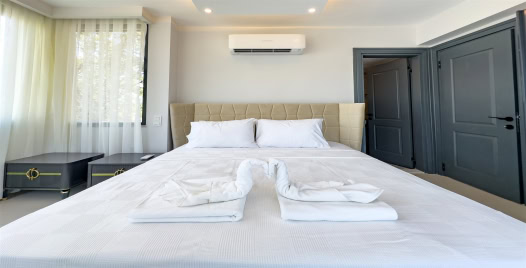 4.Yatak Odası: Çift kişilik yatak, Komodin, Klima, Elbise dolabı, Banyo ve Balkon bulunmaktadır. Teras Kat