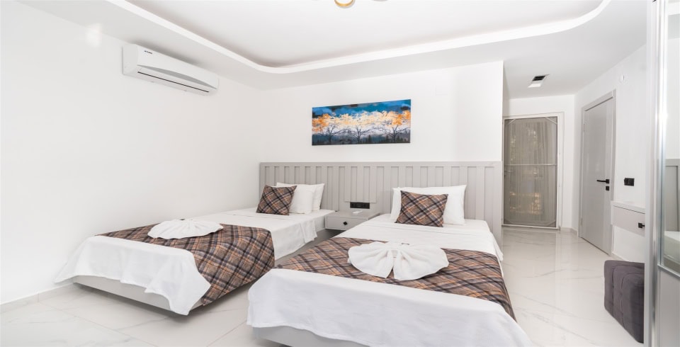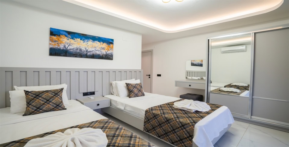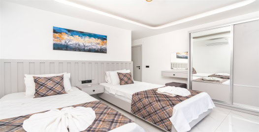 3. Yatak Odası : 2 adet tek kişilik yatak, klima, komodin, elbise dolabı, makyaj masası, banyo ve tuvalet bulunmaktadır