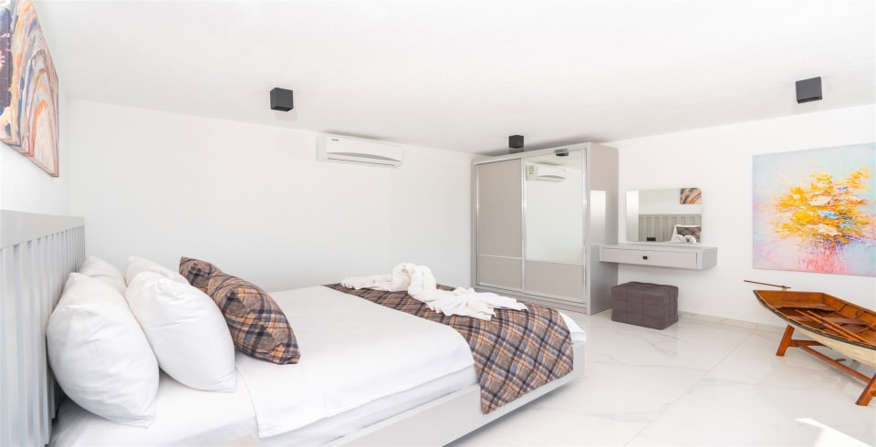 2. Yatak Odası : 1 adet çift kişilik yatak, klima, komodin, elbise dolabı, makyaj masası, banyo ve tuvalet bulunmaktadır.