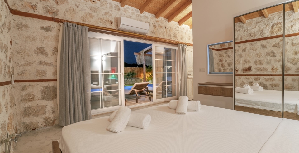 2. Yatak Odası: 1 adet çift kişilik yatak, klima, elbise dolabı, makyaj masası, komodin, banyo ve lavabo bulunmaktadır.