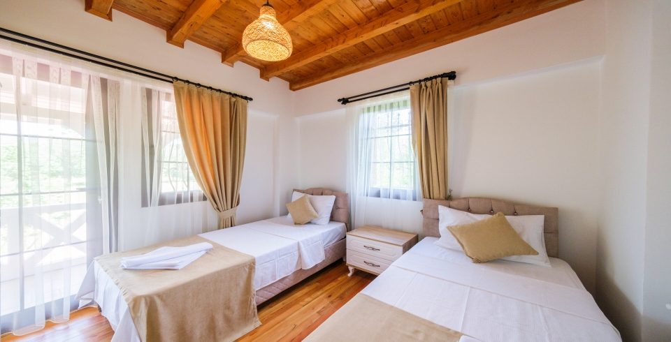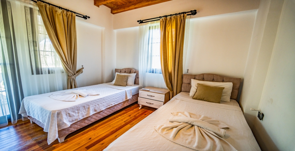3.Yatak Odası: 2 adet tek kişilik yatak, komodin, klima, ortak banyo ve lavabo bulunmaktadır.