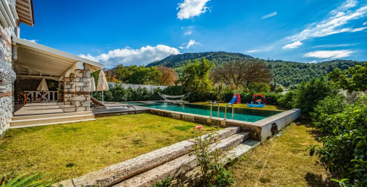 Villa Casa Mira, Muğla’nın Fethiye ilçesinin tarihi dokusuyla ünlü Kayaköy mevkiinde, doğayla iç içe huzurlu bir konumda yer almakta olup 6 kişi kapasitelidir. 3 yatak odası ve 2 banyosu ile aileler ya da arkadaş grupları için konforlu bir seçenek sunar. Taş mimari detaylarla bezenmiş villasının oturma alanı geniş; salon, klima ve havuz terasına çıkış imkanlarıyla ferah bir atmosfer sağlar. Mutfak tam donanımlı; buzdolabı, bulaşık makinesi, çamaşır makinesi, fırın ve mutfak gereçleri mevcuttur. Doğa manzaralı özel yüzme havuzu ile çocuk havuzu tatilinize eğlence ve keyif katar. Bahçesinde barbekü alanı, yemek masası, oturma alanları bulunmaktadır.