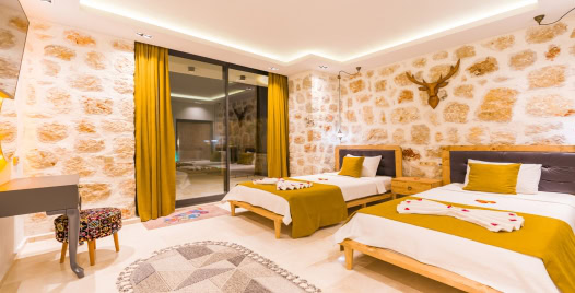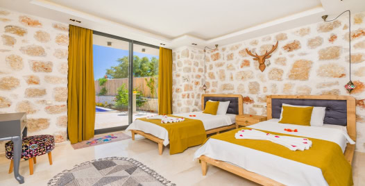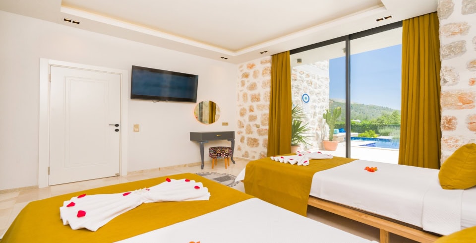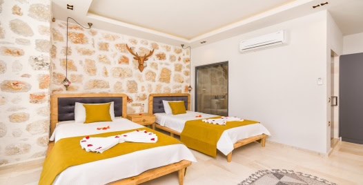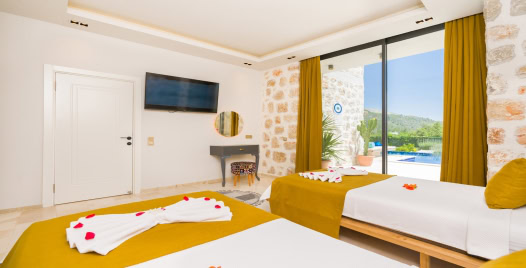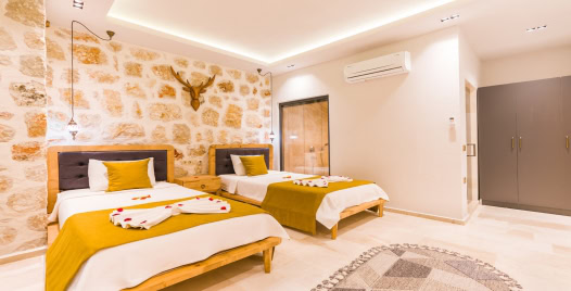 3. Yatak Odası : 2 adet tek kişilik yatak, televizyon, klima, elbise dolabı, makyaj masası, komodin, banyo ve lavabo bulunmaktadır.